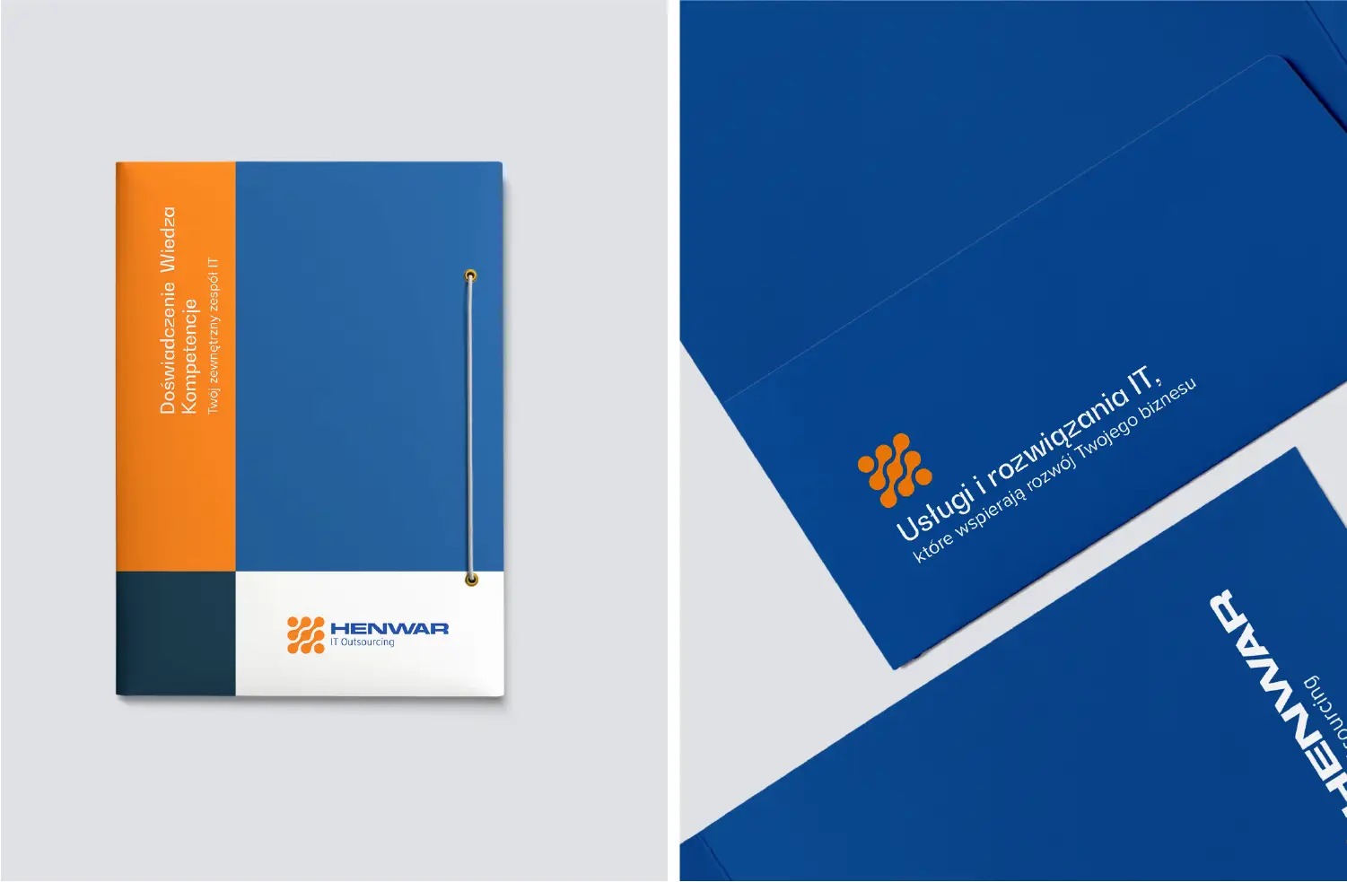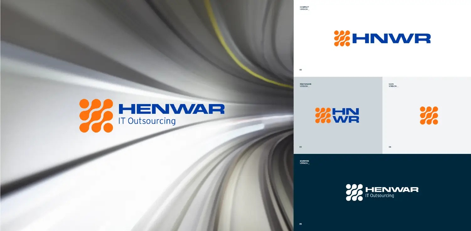 Henwar świadczy kompleksowe usługi i rozwiązania IT. Firma outsourcingowo-informatyczna wymagała nowej identyfikacji wizualnej, bezpośrednio nawiązującej do sektora, w którym działa od ponad 20 lat.